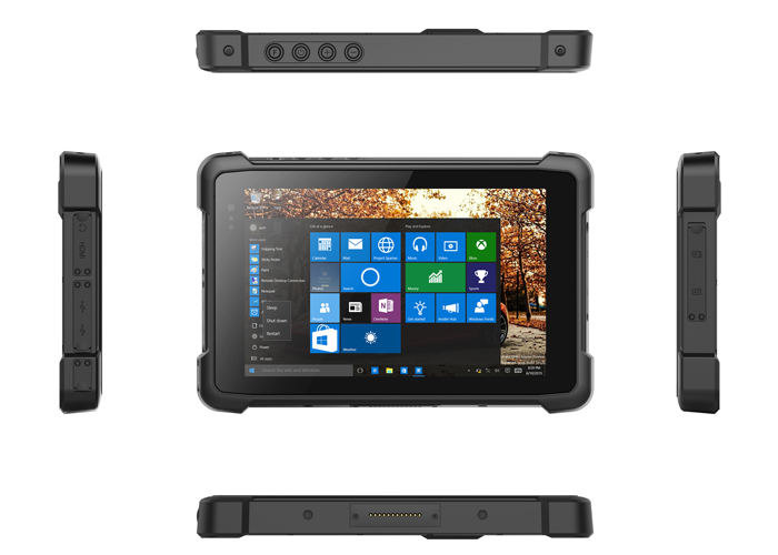 we use Corning Gorilla tempered glass touch panel and double injection mould housing to make it MIL-STD-810G standard and shockproof and sealed completely to make it waterproof,option modules NFC reader,barcode scanner,with 2.0M front camera and back 5.0M,6000mah big battery to make it work for whole day,Quad core Intel CPU and Windows 10 OS hand strap to free hands,Docking station for better charging and vehicle mount for fleet management,Now our customers they mainly use the devices in fleet management and install customization apps for special use